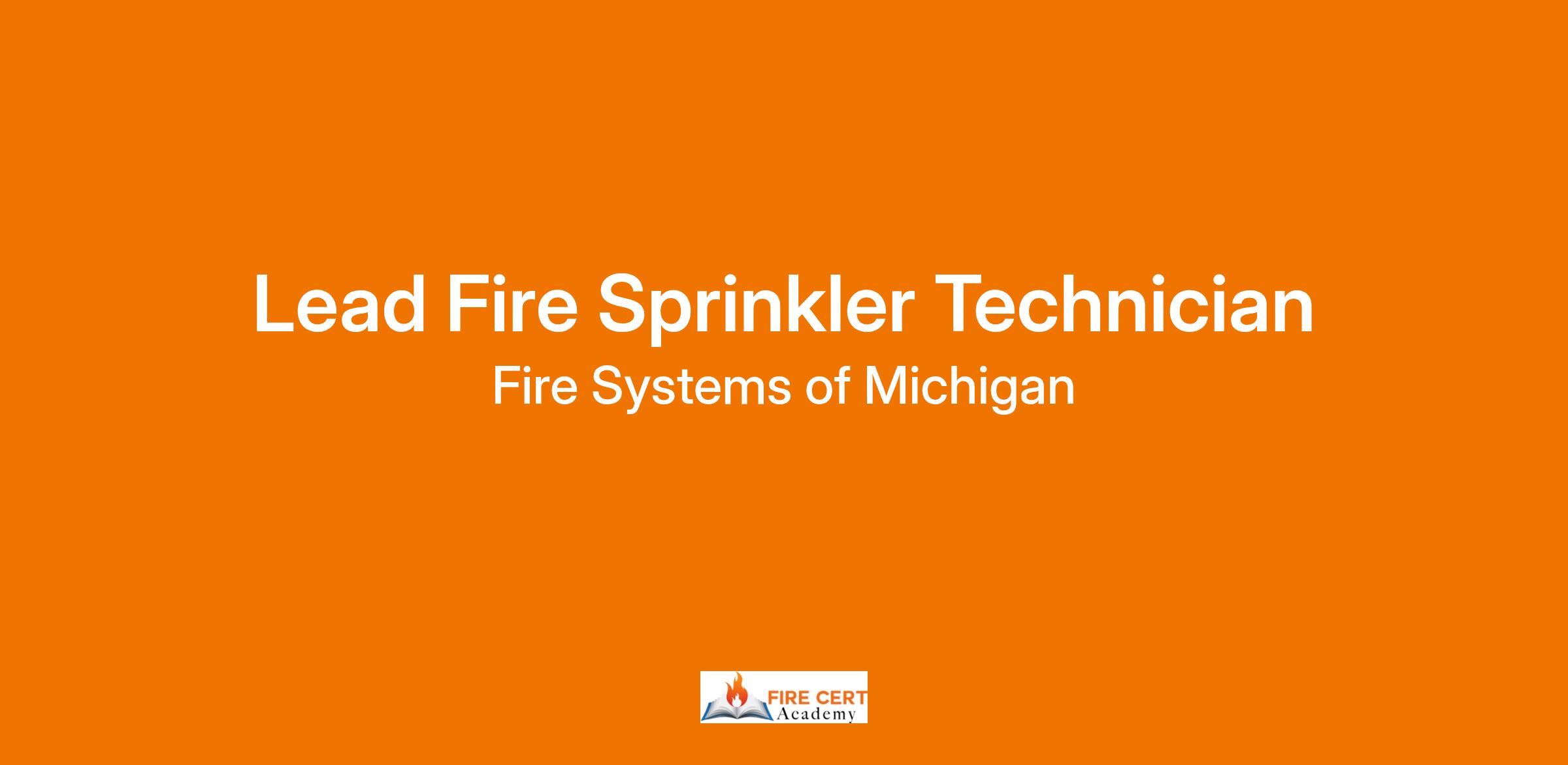 Fire Systems of Michigan, LLC. is currently seeking a Lead Fire Sprinkler Technician for our Fire Sprinkler Department. This position requires the ability to service, inspect and repair sprinkler systems for established customers on a scheduled basis and must be able for on call rotation.