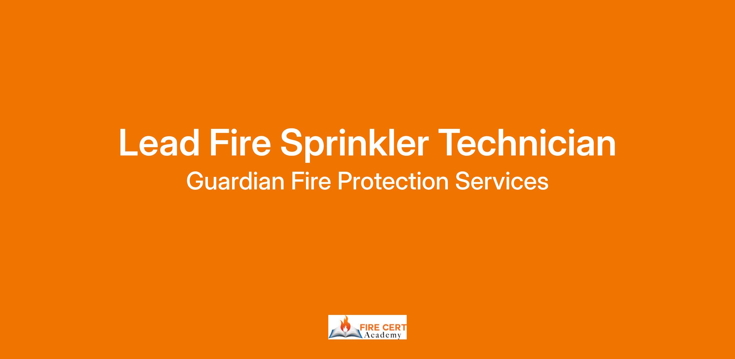Guardian Fire Protection, LLC. is currently seeking a Lead Fire Sprinkler Technician for our Fire Sprinkler Department. This position requires the ability to service, inspect and repair sprinkler systems for established customers on a scheduled basis and must be able for on call rotation.